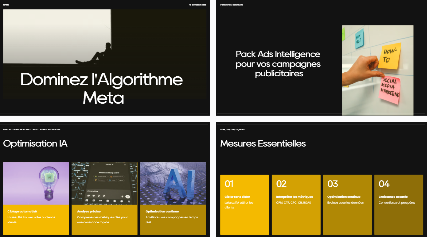 - 🎬 Bibliothèque de templates : copies, visuels, audiences